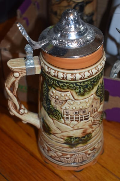 Lot of steins, marked Made in Japan, Made in Germany, very ornate steins