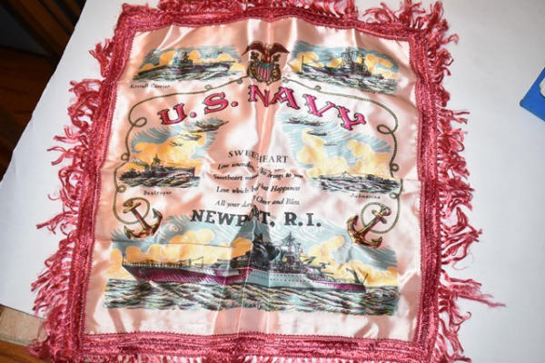 Box lot consisting of assorted vintage beer related coasters and the US Navy Sweetheart, Newport, RI pillow sham