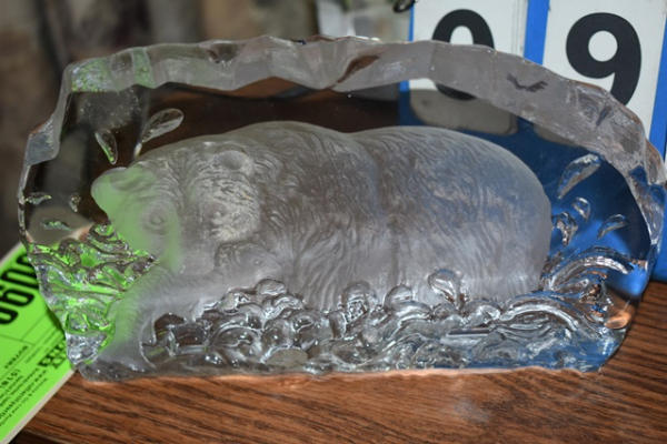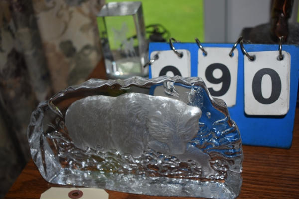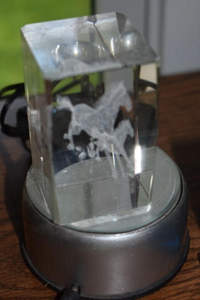 Lot including illuminated 3D horse decoration and a glass bear decoration