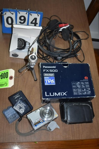 Lot of assorted digital cameras, charger, head set, small tripod, etc.