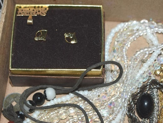Box lot of jewelry including charms, earrings, necklaces