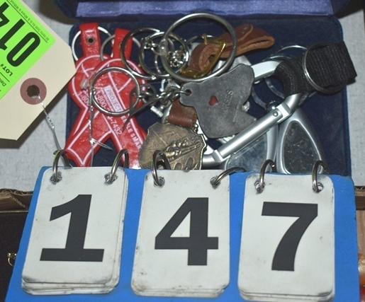 Lot of assorted keychains including horse, ribbons, etc.