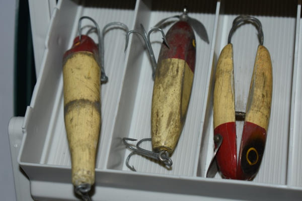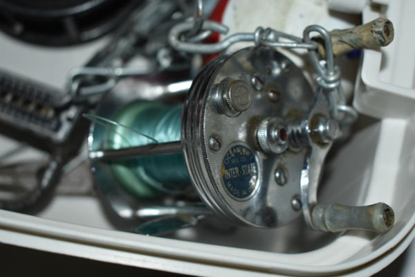 Fishing lot including vintage reel marked "409A", vintage lures, etc.