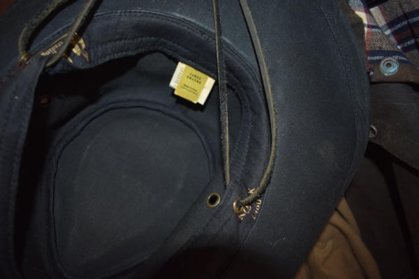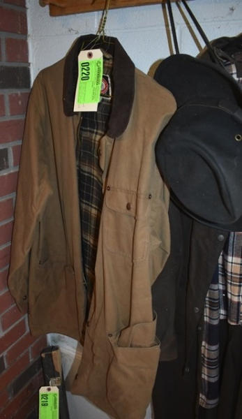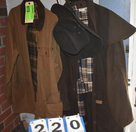 Outback Jacket (size L), hat (size L), Stockman Riding Raincoat (size M)