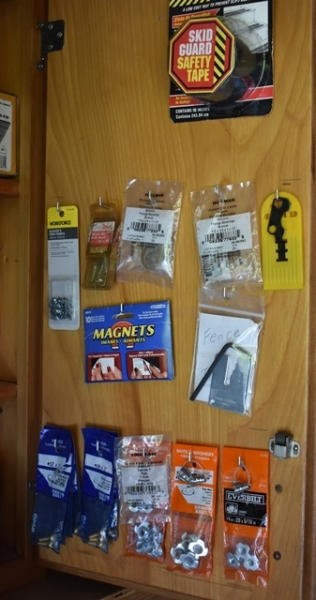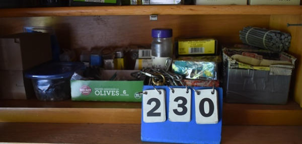 Shelf lot including ear muffs, twin cartridge respirator, Bostitch nails