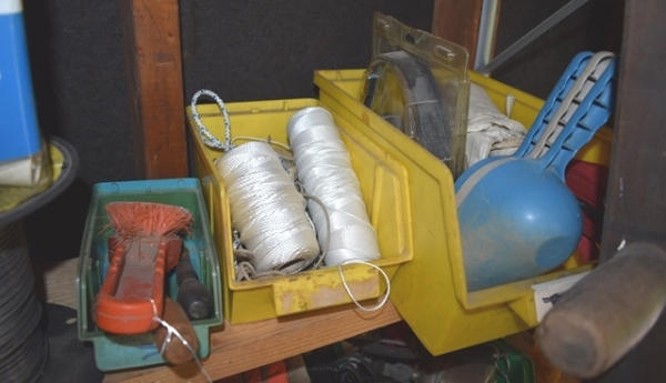 Shelf lot including lighting, string, PVC fittings