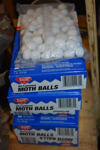 Lot including small hand held snake, roof brackets, vintage meat grinder and moth balls