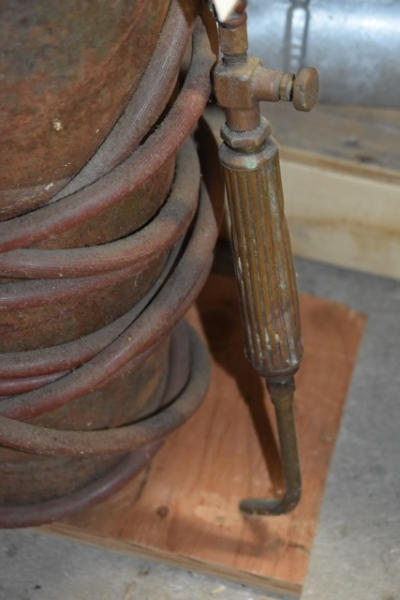 Lot of 3 small acetylene tanks and 1 with torch head and regulator