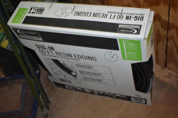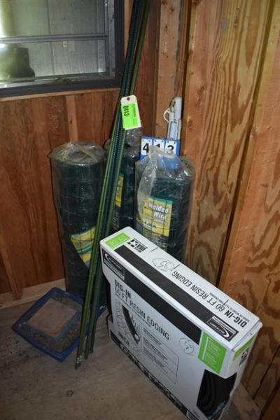 Corner lot including Dig In approx. 35' of edging, wire fencing, flower pot, etc.