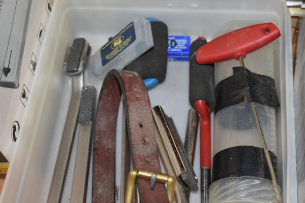 Albert's Mouth Speculum, mini size plates, 1 straight mini float, 1 removable float with tool, mini/pony size, Albert blades, #8 longer handle for back teeth, 1 wooden handle, double handle, 1 curved, 1 straight and 2 course foam handle floats