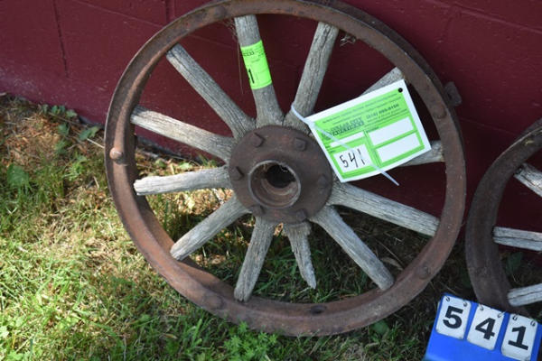 Lot of 2 vintage wood spoked wagon wheels