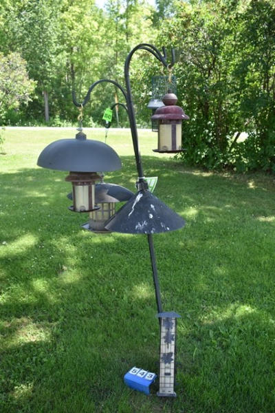 Large assortment of bird feeders