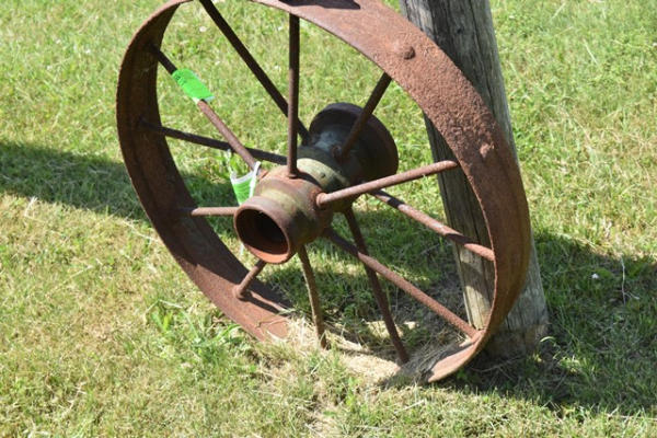 Lot of 2 metal spoked wagon wheels