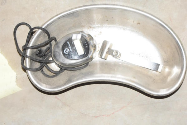 Lot of 2 pairs of leather gloves, 5 bungee cords, stainless steel tray, numbers clip, 4 bucket holders, 1 tail wrap and misc. hooks and snaps