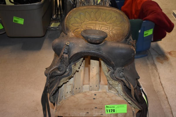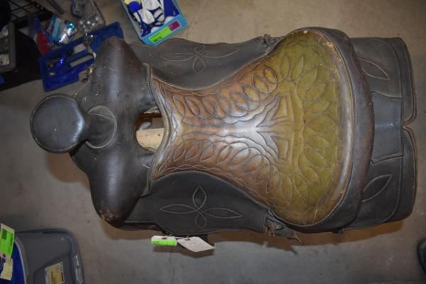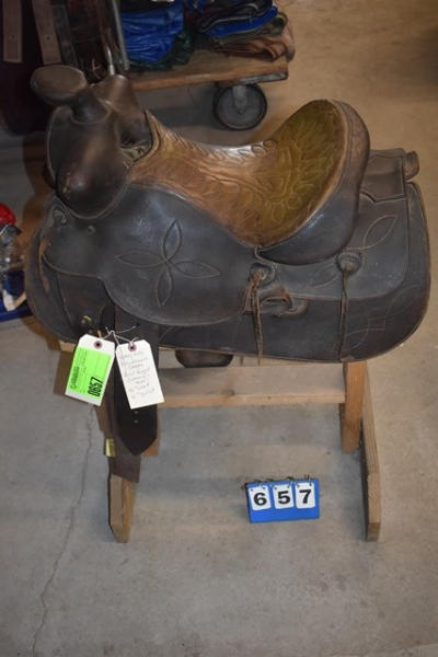 Heavy duty bulldogging saddle, built rugged, missing a fender, 16" seat, 6" gullet