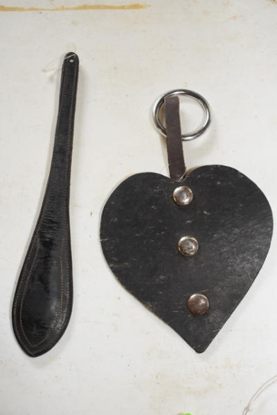 Tack hook with new bling draft halter, 1 red used draft halter and 3 decorative harness fobs