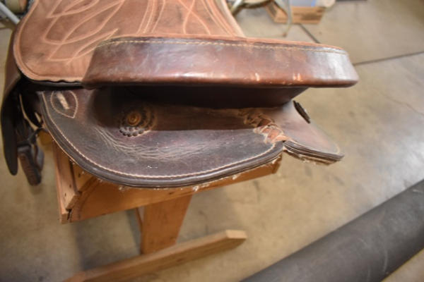 Blue Ridge Saddlery suede out seat and top fenders, with rounded skirt, Model 2000, 15" seat, 8" gullet