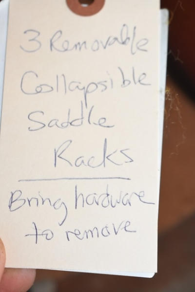 Lot of 3 removable, collapsible saddle racks. (PLEASE BRING YOUR OWN TOOLS TO REMOVE)