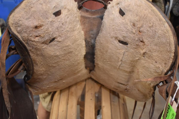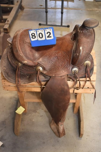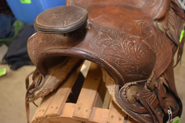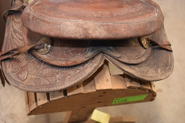 Roping saddle with floral tooling, Pelican horn, 14" seat, 7" gullet