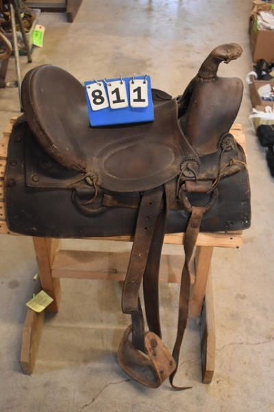 Early 1930 saddle, high back, A fork, double rigged, square skirt, 14" saddle, 4" narrow gullet