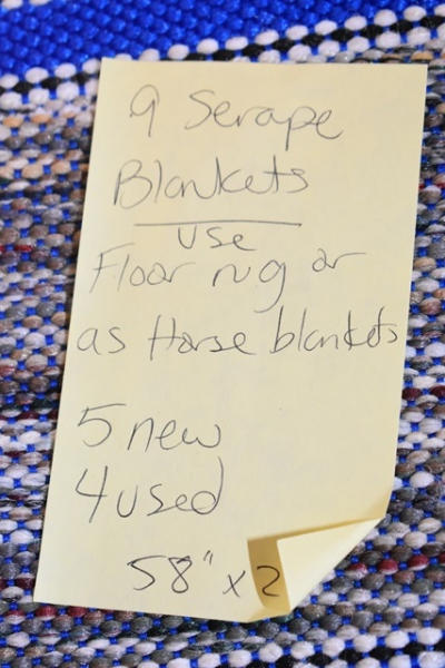 Lot of 9 Serape blankets, used for flooring or as horse blankets, 5 new or used 58" x 28"