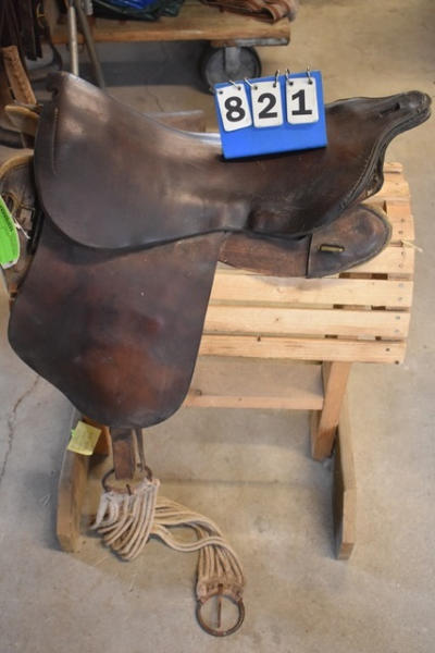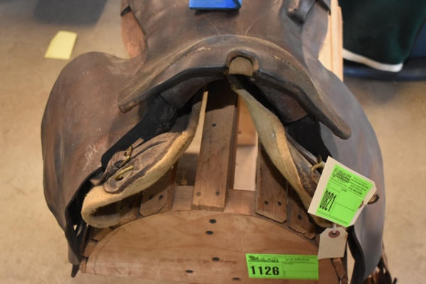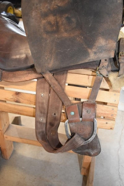 Trooper saddle with a wooden tree, felt lined and brass fittings