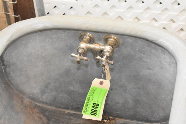 Vintage tub with wooden top rail with faucet