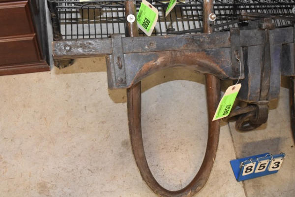 Oxen yoke, 52" with adjustable neck yoke, wood and iron fittings