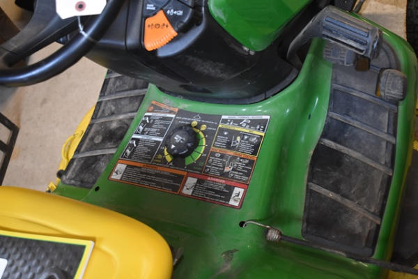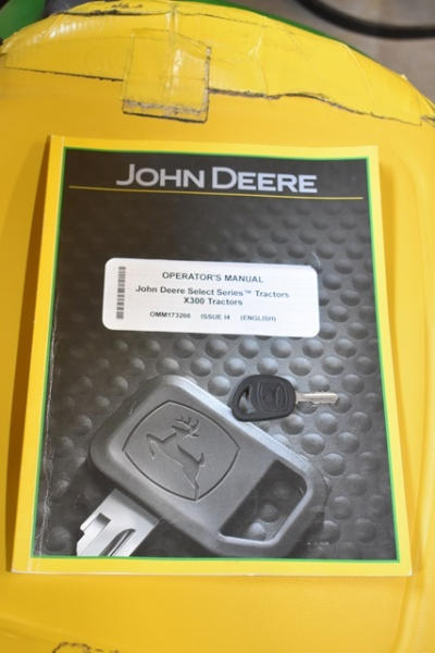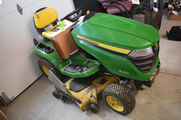 John Deere X320 riding tractor, 54" deck (edge cutting system), 22 HP gas engine, approx. 700 hours, includes 2 keys, manual and a new deck protector, Hydrostatic drive, starts and moves