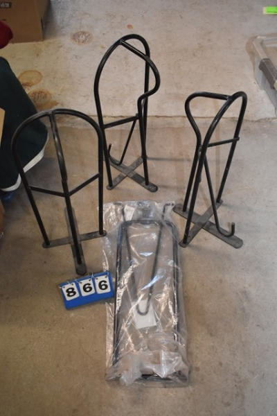 Lot of 3 wall mount saddle racks, 1 collapsible saddle rack