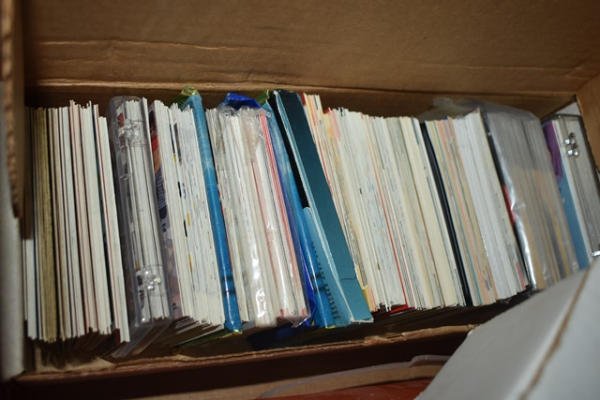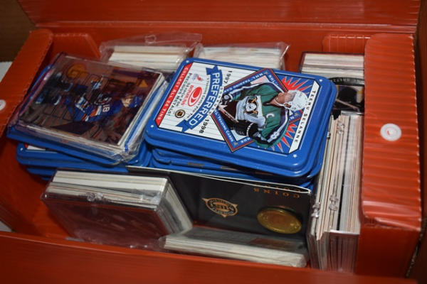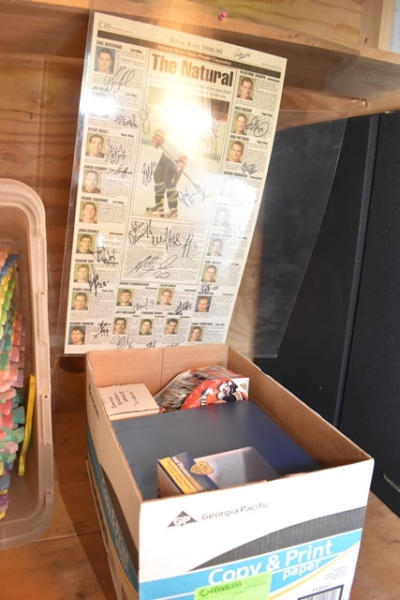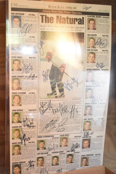 Lot of hockey cards, most from Albany River Rats, early New Jersey Devils Farm Team and others from late 90s. Also includes autographed newspaper with pictures.