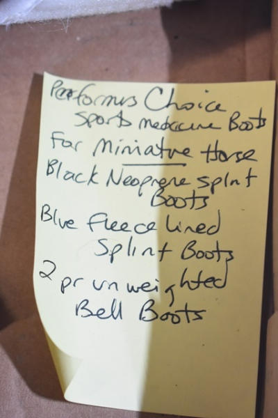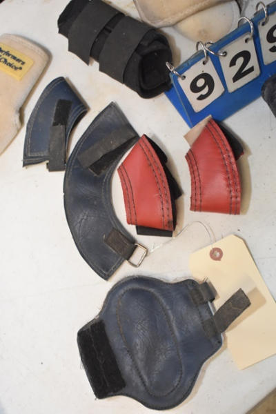 Performers Choice Sports Medicine Boots for miniature horse, black neoprene splint boots, blue fleece lined splint boots, 2 pair of unweighted Bell boots