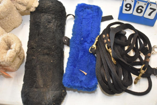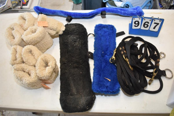 Mini breast collar pad, 2 back pads, 4 black mini leads, 2 pair of mini fleece shipping boots, 2 buck hanger cross ties