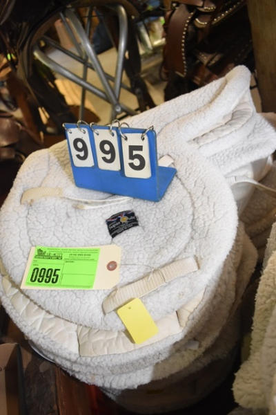 Lot of 7 fitted English saddle show pads, 6 fleece, 1 cotton