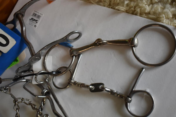 Lot of 5 5 1/4" bit with bitted hackamore, dog bone and twisted spoon bits