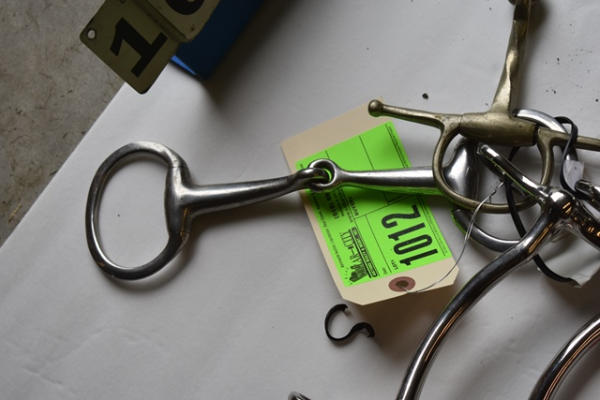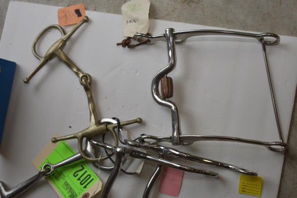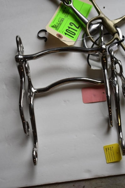 Lot of 5 6" bits including 3 grazing type bits, a Never Rust Slow Turn Twisted Wire full cheek snaffle (Made in England), and an egg butt snaffle