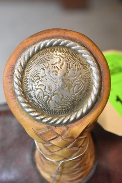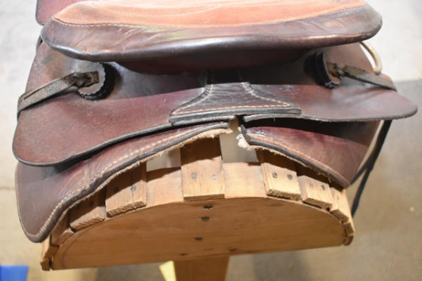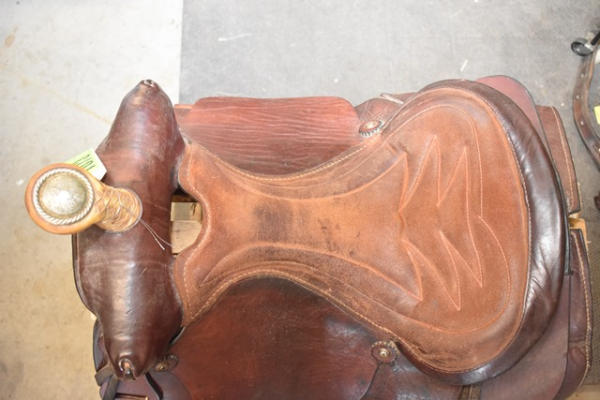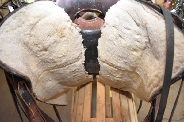 15" seat, 6" gullet, leather saddle with suede out seat and tie string buckle