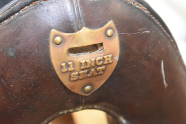 1918 Rock Island Arsenal Calvary Saddle, 11" seat with tapaderos, it is stamped "US" and it has girth and over straps included, brass fittings, curved high back seat, open gullet