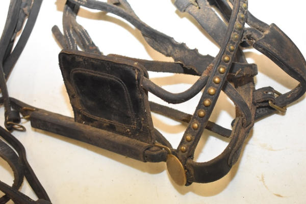 Pony spotted back pad with crupper, pony bridle, does not have traces or lines, but it makes a good lunging harness, has brass fittings