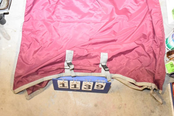 Large horse, head to tail rain sheet in maroon with gray trim