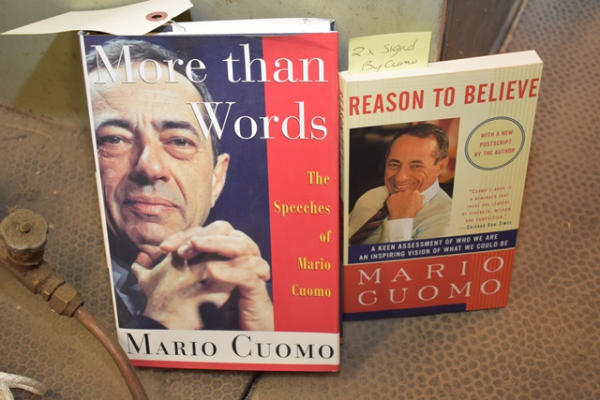 Lot of 2 books by Mario Cuomo and a bookmarker, both books are signed by Mario Cuomo at the time of her Governorship