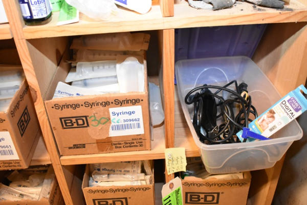 Lot of 30cc syringes, 2 pair of clippers, 5cc and 10cc syringes