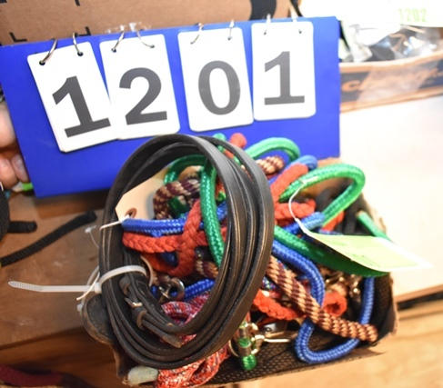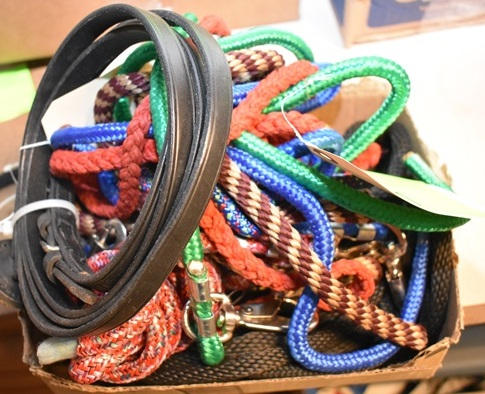Lot of 5 nylon miniature horse leads and leather show lead with buckle