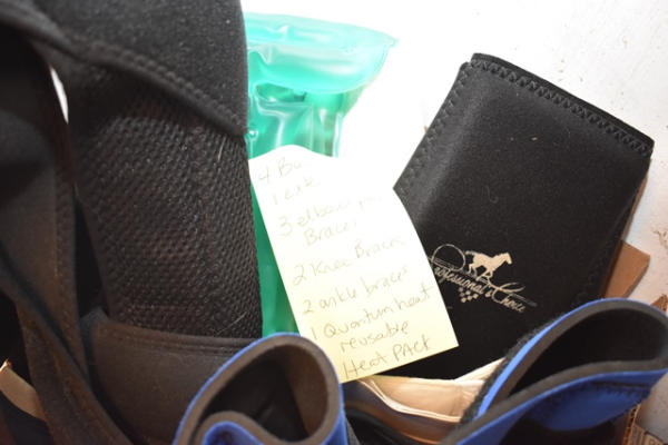 Collection of medical gear including 4 back braces, 1 extender, 3 elbow pad braces, 2 knee braces, 2 ankle braces, a Quantum Heat reusable heat pack