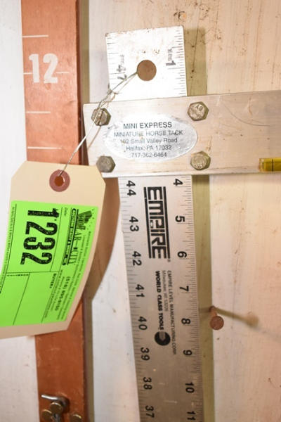 Lot of 2 measuring sticks, 1 is a large horse (up to 18 hands), 1 is an Empire miniature horse (to 47"). The mini horse stick is aluminum, large horse is wooden