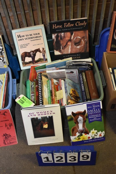 Lot of 3 GoWaNi Pony Boy books, 2 are autographed, 1 is not, several training books are arena exercises, veterinary care, John Lyons, breeding, driving, etc., there are 3 training videos and a couple coffee table books