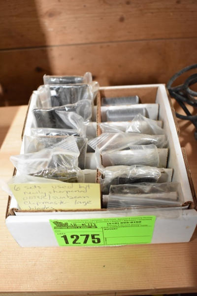 Lot of 6 sets used, but newly sharpened Oster/Sunbeam/Clipmaster large blades and Oster A5 blades, 1 size 30, 2 size 10, 6 size 40