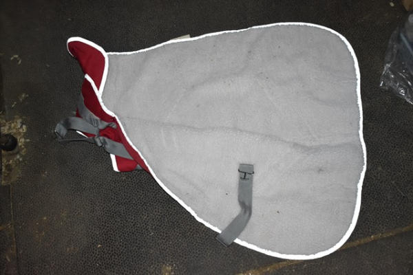 Size 34" fleece lined mini blanket with adjustable front closure, waterproof