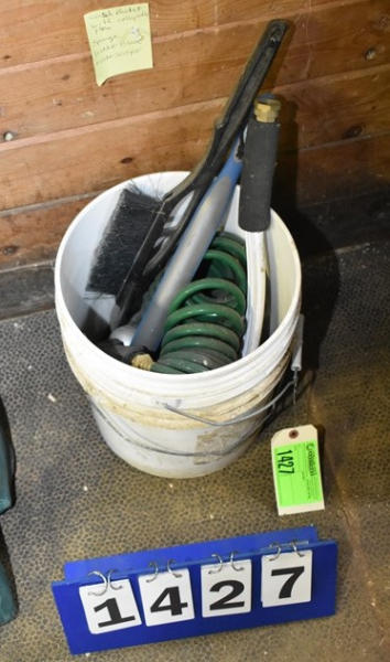 Wash bucket with collapsible hose, sponge, water blade and Oster scraper