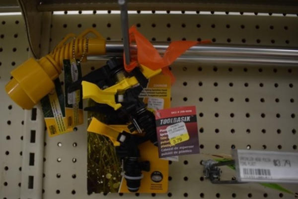 Lot of hand held sprayer heads and 2 pulsating sprinkler heads
